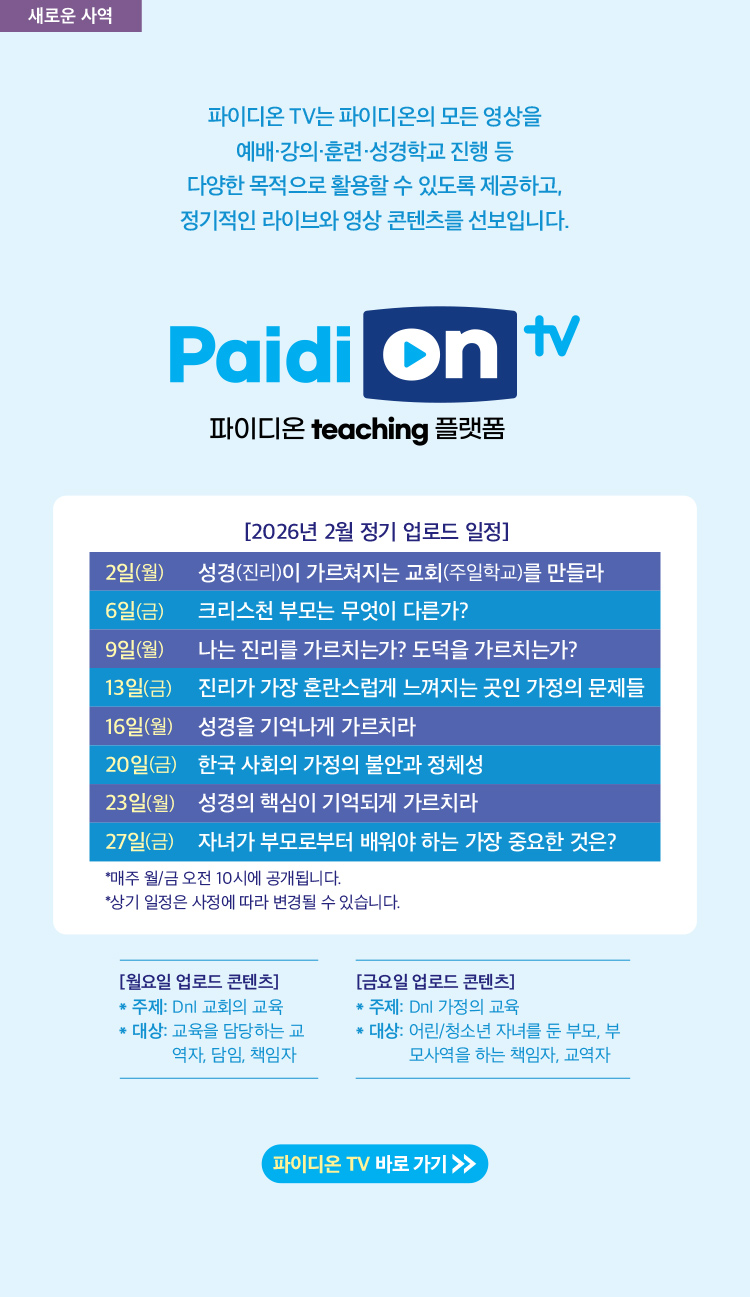 ‘위기’라 불리는 이 시기에, 교사와 리더십이 해야 할 일은 서로 마음을 모아 이 어려운 다음세대 사역의 자리를 끝까지 ‘복된 자리’로 지켜내는 것입니다.